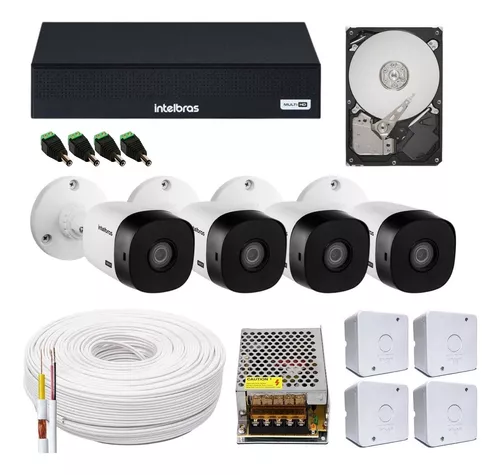 Kit cftv Intelbras completo com HD 500 gigas, câmera de segurança Intelbras VHC 1120 bullet e dvr Intelbras 1004c 4 canais.